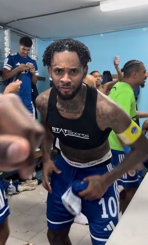 Leandro Bacuna celebrating in the Curaçao dressing room