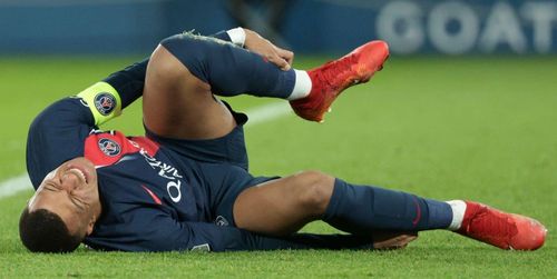 Kylian Mbappe’s legs spread wide