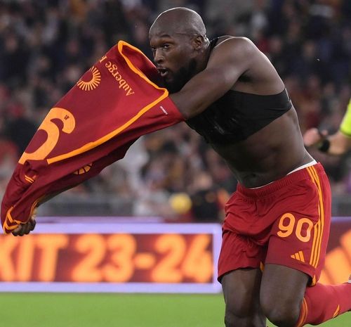 Romelu Lukaku taking off his shirt
