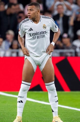 Kylian Mbappe pulling up his shorts and showing off his fat bulge